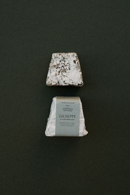 Giuseppe unser pikanter Blauschimmelkäse, ist ein temperamentvoller Weichkäse, mit einem feinen, würzigen Pilzaroma.
