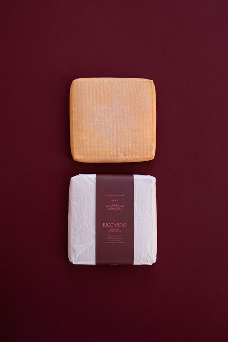 Riccardo, unser feine Weichkäsetorte, ist ein Gaumenschmeichler, welcher durch seine ausgeprägte Rotschmierflora besticht. Seine Textur ist samtweich, sein Aussehen rustikal und sein Geschmack ausgeprägt, reichhaltig und komplex.